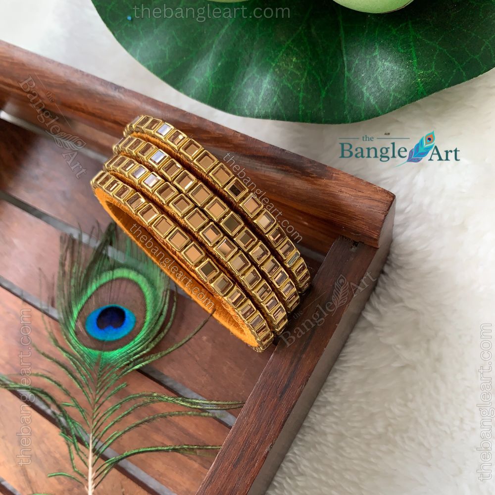 Set of four neatly finished Gold stone bangles. A perfect blend of traditional and contemporary style, ideal for office and Regular wear. Can mix and match with any bangles.