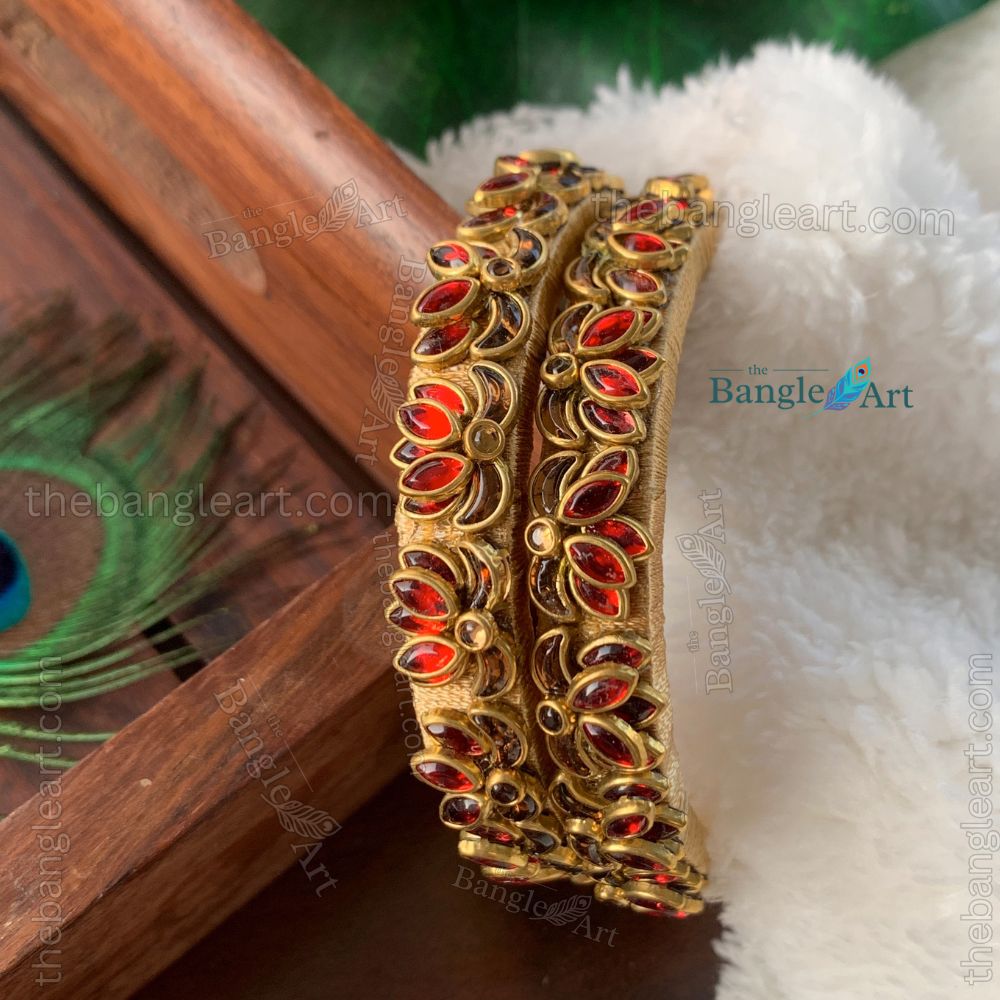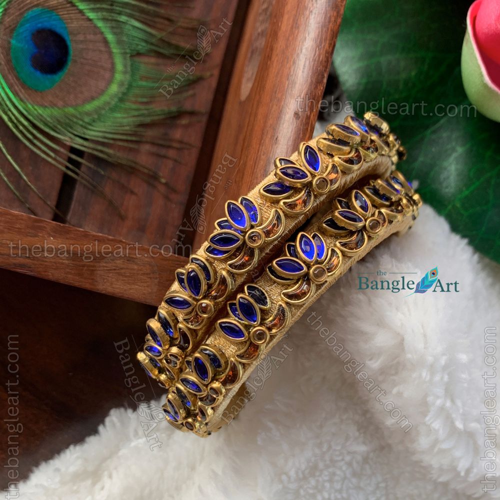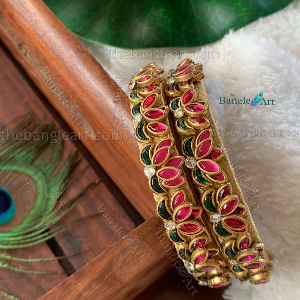 Traditional set of 2, 3D- Lotus Flower Design bangles. Perfect for office, temple, and festive wear. Color customization available.