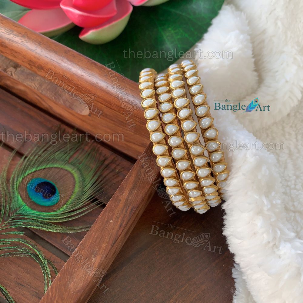 Set of four neatly finished Pearl White Raindrop stone bangles. A perfect blend of traditional and contemporary style, ideal for office and Regular wear. Can mix and match with any bangles.