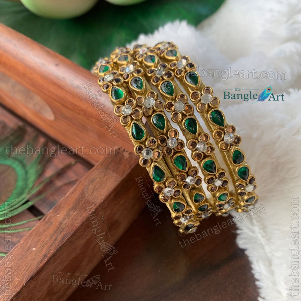 Set of four neatly finished stone bangles. A perfect blend of traditional and contemporary style, ideal for office and Regular wear. Can mix and match with any bangles. Color customization available to match your outfit.