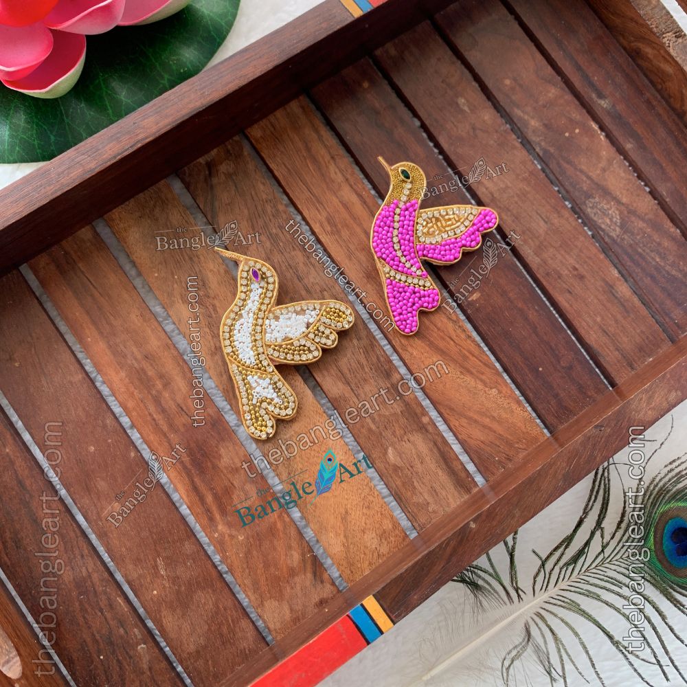Handcrafted beaded bird brooch, beautifully designed with intricate beadwork and stone detailing for a rich, artistic finish. Lightweight and eye-catching, perfect to style on blouses, sarees, dupattas, bags, or hair accessories. Adds a unique handcrafted charm to any outfit.
