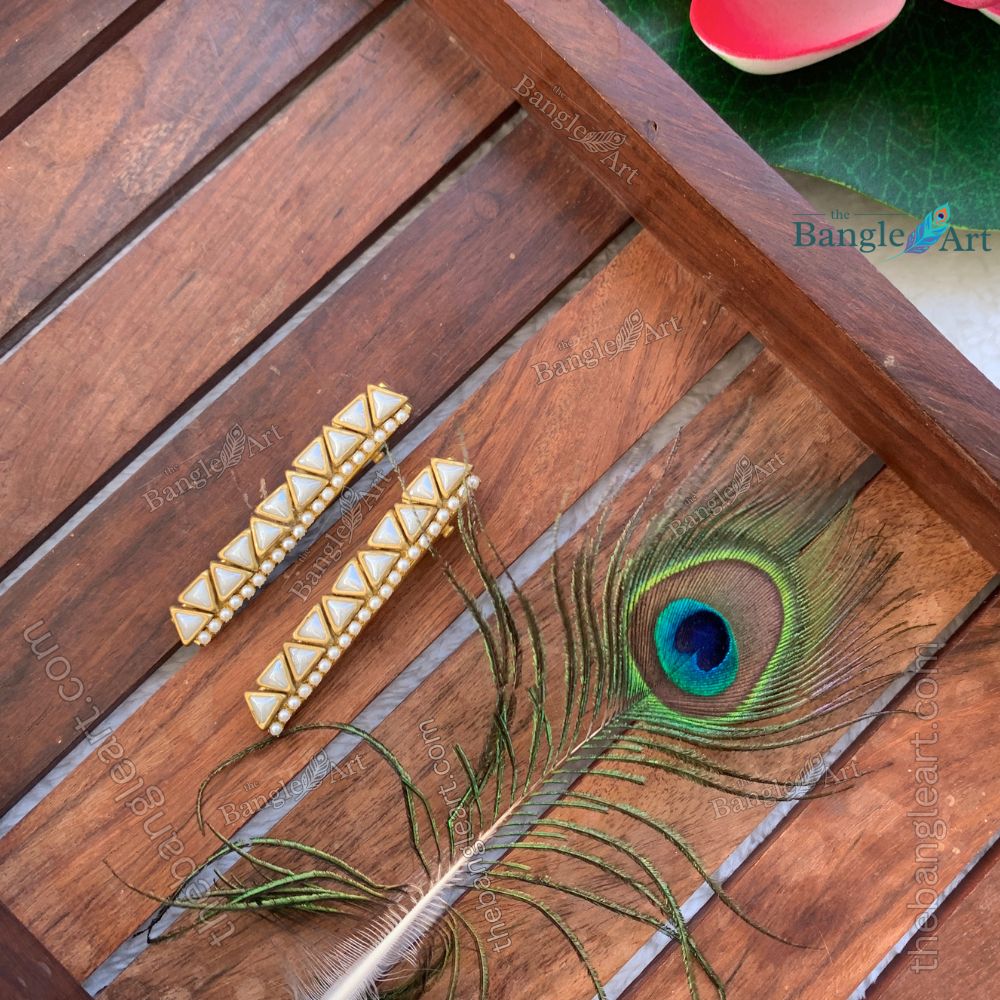 Elegant Handmade alligator hair clip embellished with kundan stones, designed to add a touch of traditional sparkle. Secure grip and lightweight finish make it perfect for festive and bridal styling. Color customization available to match your outfit.